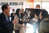 | À±¼®¿ ´ëÅë·É°ú ±è°ËÈñ ¿©»ç°¡ 17ÀÏ ¼¿ï ¼Ãʵ¿ ¾ÆÅ©·Îºñ½ºÅ¸ »çÀú¸¦ ã¾Æ Áֹε鿡°Ô °¨»ç Àλ縦 ÀüÇÑ µÚ ÁֹΠ»çÁøÀ¸·Î ¸¸µç À± ´ëÅë·É ³»¿Ü »çÁøÀ» Àü´Þ¹Þ°í ÀÖ´Ù. |