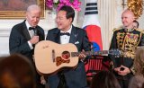 | ¹Ì±¹À» ±¹ºó ¹æ¹®ÇÑ À±¼®¿ ´ëÅë·ÉÀÌ 26ÀÏ ¹é¾Ç°ü¿¡¼ ¿¸° ±¹ºó¸¸Âù Ưº°°ø¿¬¿¡¼ 1970³â´ë ºôº¸µå È÷Æ®°î ¡®¾Æ¸Þ¸®Ä ÆÄÀÌ¡¯¸¦ Áï¼®¿¡¼ ¿Ã¢ÇÏÀÚ Á¶ ¹ÙÀÌµç ´ëÅë·É°ú Âü¼®ÀÚµéÀÌ È¯È£Çϰí ÀÖ´Ù. |