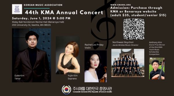 ¿ö½ÌÅÏÁÖÀ½¾ÇÇùȸ(KMA, ȸÀå ±èÀ¯Áø)°¡ ¿À´Â 6¿ù 1ÀÏ ¿ÀÈÄ 5½Ã ½Ã¾ÖƲ º£³ª·Î¾ßȦ¿¡¼ 44ȸ Á¤±â¿¬ÁÖȸ¸¦ °³ÃÖÇÑ´Ù.