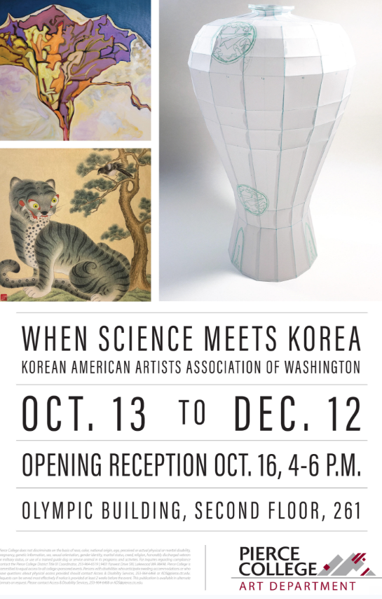 ¿ö½ÌÅÏÁÖ Çѹ̿¹¼ú°¡Çùȸ(KAAW)°¡ ÁÖÃÖÇϴ Ưº°Àü '°úÇÐÀÌ Çѱ¹À» ¸¸³µÀ» ¶§(WHEN SCIENCE MEETS KOREA)¡¯°¡ ¿À´Â 10¿ù 13ÀϺÎÅÍ 12¿ù 12ÀϱîÁö ·¹ÀÌÅ©¿ìµåÀÇ ÇǾ Ä®¸®Áö Æ÷Æ® ½ºÆ¿¶óÄÄ Ä·ÆÛ½º(9401 Farwest Dr SW, Lakewood) ¹Ì¼ú°ü¿¡¼ ¿¸°´Ù.