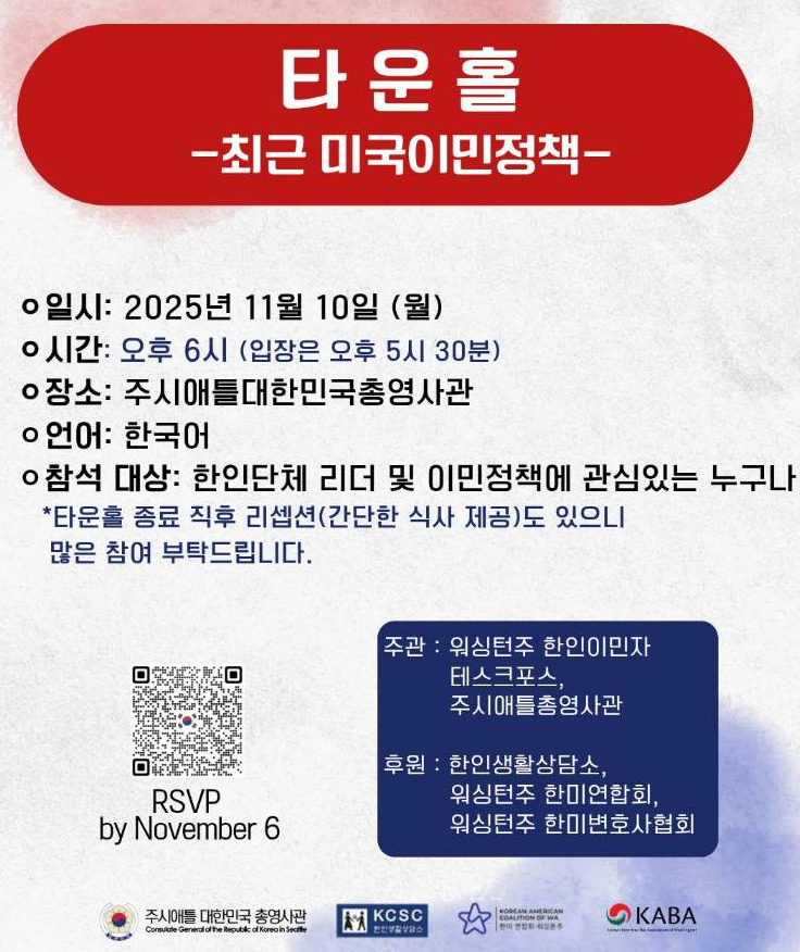 ÃÖ±Ù ¹Ì±¹ ³» À̹Π´Ü¼Ó °È¿Í À̹μ¼°ü´Ü¼Ó±¹(ICE) ÇàÁ¤ ÁýÇàÀÌ ÀÕµû¸£¸ç À̹ÎÀÚµéÀÇ ºÒ¾È°¨ÀÌ ³ô¾ÆÁö´Â °¡¿îµ¥ ½Ã¾ÖƲÃÑ¿µ»ç°üÀÌ ÇÑÀÎ À̹ÎÀÚ Å½ºÅ©Æ÷½º¿Í °øµ¿À¸·Î ¡®À̹ÎÁ¤Ã¥ Ÿ¿îȦ ¹ÌÆÃ¡¯À» 11¿ù 10ÀÏ(¿ù) ¿ÀÈÄ 6½Ã ÃÑ¿µ»ç°ü¿¡¼ °³ÃÖÇÑ´Ù.