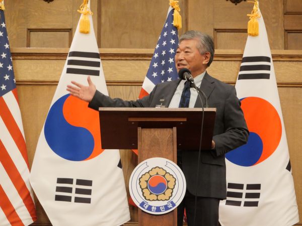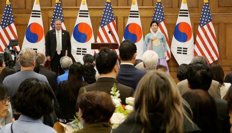 ¼ ÃÑ¿µ»ç´Â °Åµ¿ÀÌ ºÒÆíÇÑ Çѱ¹Àü ÂüÀü¿ë»ç¿¡°Ô ÆòÈÀÇ ´ë»ç ¸Þ´ÞÀ» ¼ö¿©Çϰí ÀÌ ±âȸ¸¦ ºô·Á ÇÑ¹Ì µ¿¸Í °È¿¡ ±â¿©ÇÑ Çѱ¹Àü ÂüÀü ¿ë»ç, ±º °ü°èÀÚ, °ø¹«¿ø, ±×¸®°í Áö¿ª »çȸ ÁöµµÀڵ鿡°Ô Å« ¹Ú¼ö¸¦ º¸³»´Þ¶ó°í ´çºÎÇÏ¸ç ¿¬¼³À» ¸¶¹«¸®Çß´Ù.