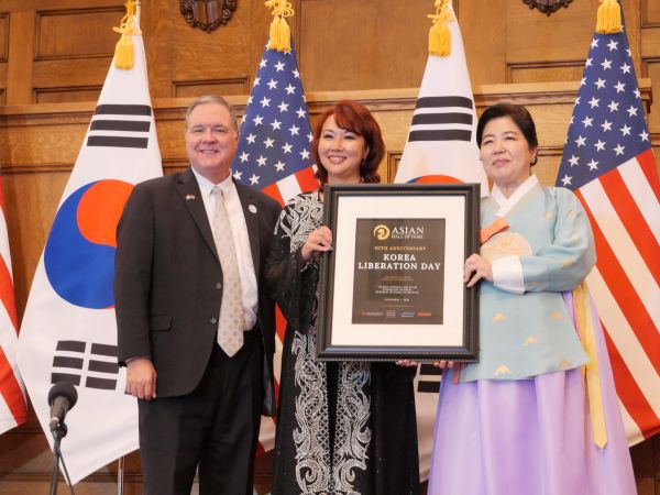 À̳¯ Çà»ç¿¡¼ ¼ ÃÑ¿µ»ç¸¦ ¾Æ½Ã¾È ¸í¿¹ÀÇ Àü´ç(Asian Hall of Fame)¿¡ Çå¾×Çß´ø Àç´Ü ÃøÀÌ ±¤º¹ÀýÀ» ÀÎÁõÇÏ´Â ±â³äÆÐ¸¦ ÀüÇß°í ¿ö½ÌÅÏÁÖ ¿µ»çÇùȸÀÇ ¸¶Å© °µÅ¸ ȸÀåµµ °ø·Î ¸Þ´ÞÀ» ¼ ÃÑ¿µ»ç¿¡°Ô ¼ö¿©Çß´Ù.