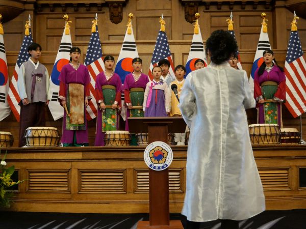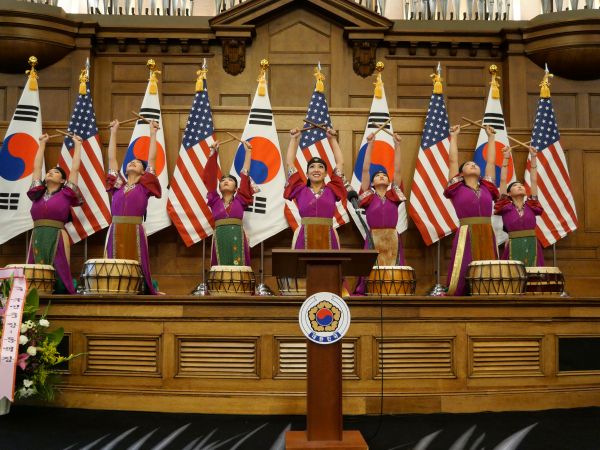 ¼ÀºÁö ½Ã¾ÖƲÃÑ¿µ»ç´Â Àλ縻¿¡¼ "°Ç±¹ Á¦4357ÁÖ³â°ú ±¤º¹ 80ÁÖ³âÀ» ±â³äÇÏ´Â Çà»ç"¶ó¸é¼ Çѹ̵¿¸ÍÀÇ Á߿伺À» ¾ð±ÞÇÏ¸ç µ¿¸Í°ú ¾Èº¸, ¹®È, ÀںνÉ, °øµ¿Ã¼, ±×¸®°í ÇÑ¹Ì ¾ç±¹ÀÇ ¿ìÁ¤À» °Á¶Çß´Ù.