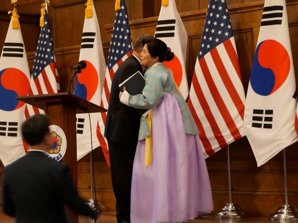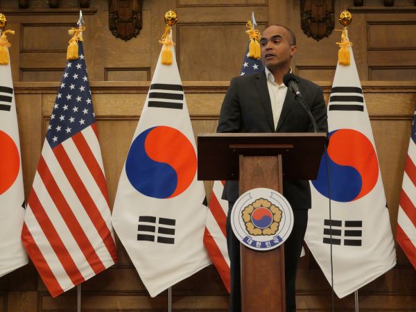Çѹ̵¿¸ÍÀº ÀÚ½ÅÀÌ ÇÏ´Â ¸ðµç ÀÏÀÇ Çٽɿ¡ ³õ¿©ÀÖ´Ù°í ¹àÈù ¼ ÃÑ¿µ»ç´Â "Çѱ¹Àº 88³â Àü µ¶¸³À» µÇã¾ÒÁö¸¸, ¸î ³â ÈÄ Çѱ¹ ÀüÀïÀÇ ÂüȤÇÔ¿¡ Á÷¸éÇØ¾ß Çß´Ù. ÀýüÀý¸íÀÇ ¼ø°£, ¹Ì±¹°ú ´Ù¸¥ ±¹°¡µéÀÌ Çѱ¹À» µµ¿ì·¯ ¿ÔÀ¸¸ç, ¼ö¹é¸¸ ¸íÀÇ ÀþÀº ¹Ì±¹ÀεéÀÌ ¿ë°¨ÇÏ°Ô ½Î¿ü°í À̵éÀÇ Èñ»ýÀ¸·Î ÀÎÇØ ¼¼°è¿¡¼ °¡Àå ±»°ÇÇÑ ÆÄÆ®³Ê½Ê Áß ÇϳªÀÎ Çѹ̵¿¸ÍÀÌ Åº»ýÇß´Ù"°í ¸»Çß´Ù.