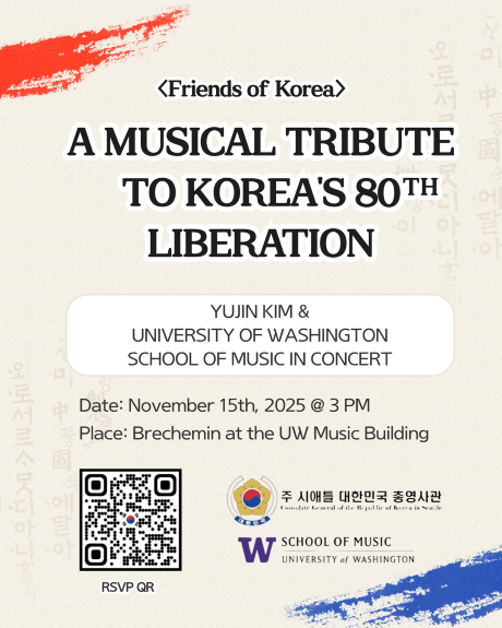 ½Ã¾ÖƲÃÑ¿µ»ç°üÀº ¿ö½ÌÅÏ´ëÇÐ(UW) À½¾Ç´ëÇаú °øµ¿À¸·Î ±¤º¹ 80ÁÖ³âÀ» ±â³äÇϴ Ưº°À½¾Çȸ(Friends of Korea – A Musical Tribute to Korea¡¯s 80th Liberation)¸¦ °³ÃÖÇÑ´Ù°í 12ÀÏ ¹àÇû´Ù.