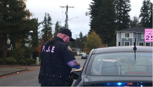 | Áö³ 11¿ù 10ÀÏ ¸Þ¸®½ººô °æÂû°üÀÌ ±³Åë ´Ü¼Ó Áß ¿îÀüÀÚ¿Í ´ëÈÇϰí ÀÖ´Ù. (Photo: Marysville Police Department) |