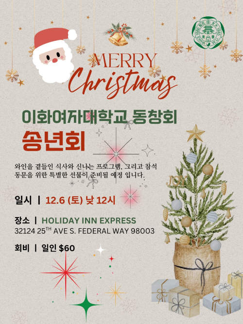 ÀÌÈ¿©ÀÚ´ëÇб³ ½Ã¾ÖƲ µ¿Ã¢È¸°¡ ¿À´Â 12¿ù 6ÀÏ(Åä) ³· 12½Ã, Æä´õ·²¿þÀÌ¿¡ À§Ä¡ÇÑ È¦¸®µ¥ÀÌ ÀÎ ÀͽºÇÁ·¹½º È£ÅÚ¿¡¼ 2025³â ¼Û³â¸ðÀÓÀ» °®´Â´Ù.