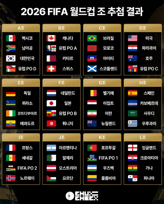 ¡Þ 2026 FIFA ºÏÁß¹Ì ¿ùµåÄÅ Á¶ Ãß÷ °á°ú(°ýÈ£´Â FIFA ·©Å·)