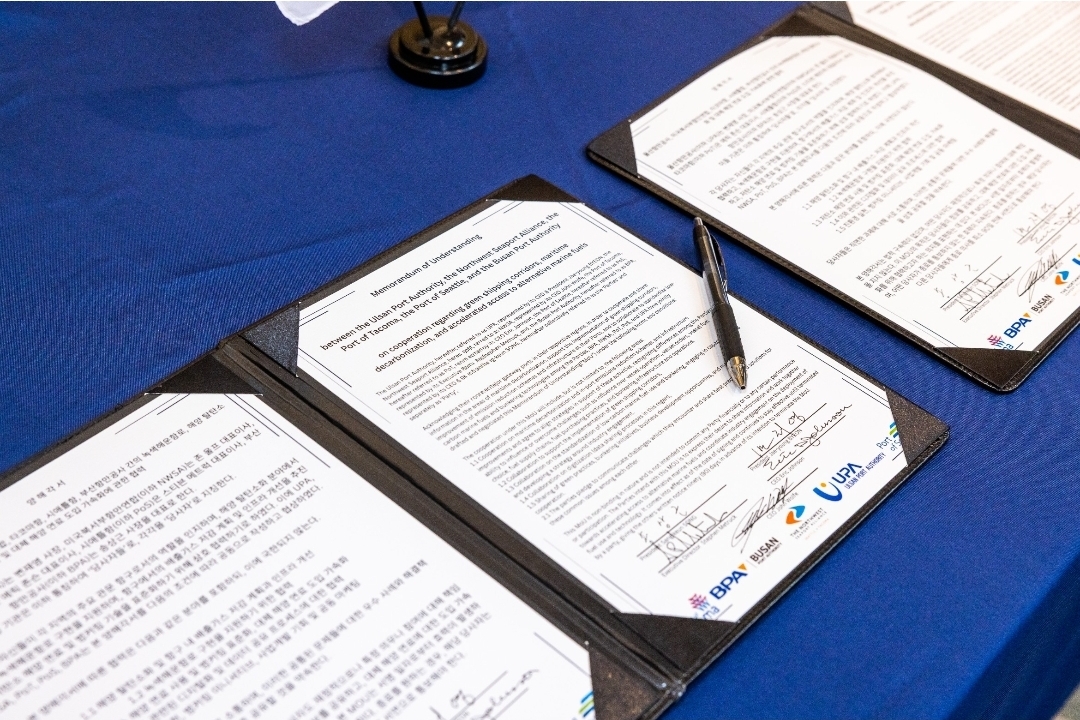 ÃÖ±Ù ½Ã¾ÖƲÇ׸¸Ã»°ú ŸÄÚ¸¶Ç׸¸Ã»Àº Çѱ¹ÀÇ ºÎ»êÇ׸¸°ø»ç, ¿ï»êÇ׸¸°ø»ç°¡ Âü¿©ÇÑ ÇÑ¡¤¹Ì ¡®³ì»öÇØ¿îÇ×·Î(Green Shipping Corridor)¡¯ ±¸ÃàÀ» À§ÇÑ 5ÀÚ ¾çÇØ°¢¼(MOU)¸¦ ü°áÇß´Ù. À̹ø Çù¾àÀº ¾ç±¹À» ÀÕ´Â ÁÖ¿ä ÇØ»ó ±³¿ª·ÎÀÇ Å»Åº¼ÒÈ¿Í Áö¼Ó°¡´ÉÇÑ Ç׸¸ ¿î¿µÀ» ¸ñÇ¥·Î ÇÑ ¿ª»çÀû ÇÕÀÇ·Î Æò°¡µÈ´Ù.