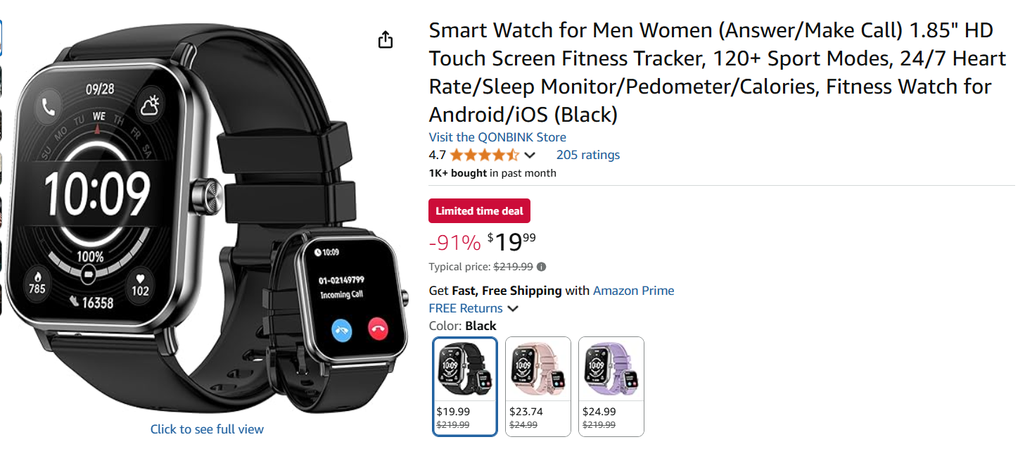 1. ¾Æ¸¶Á¸, 219´Þ·¯ ½º¸¶Æ®¿öÄ¡ 19.99´Þ·¯¿¡ ÇÑÁ¤ ÆÇ¸Å