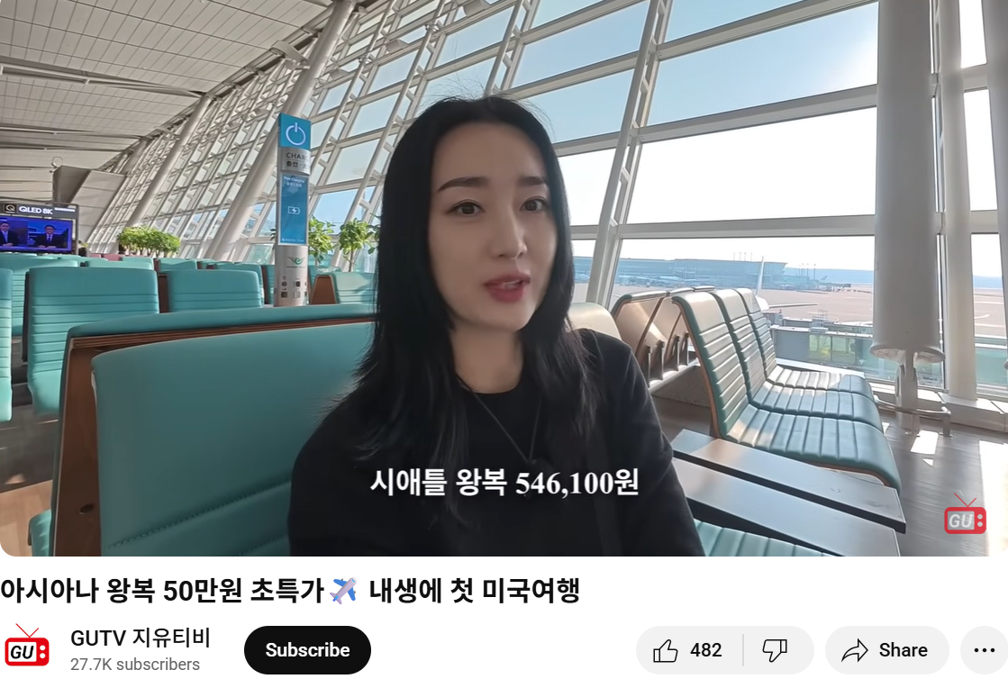 ÃÖ±Ù Çѱ¹¿¡¼ ¾Æ½Ã¾Æ³ªÇ×°øÀÌ ½Ã¾ÖƲ ¿Õº¹ Ç×°ø±ÇÀ» 50¸¸¿ø´ëÀÇ ÆÄ°ÝÀûÀÎ °¡°Ý¿¡ ÆÇ¸ÅÇÑ »ç½ÇÀÌ ÇÑ À¯Æ©¹ö¸¦ ÅëÇØ ¾Ë·ÁÁ³´Ù. ´Þ·¯·Î ȯ»êÇϸé 400´Þ·¯µµ ¾ÈµÇ´Â Çæ°ªÀÌ´Ù.