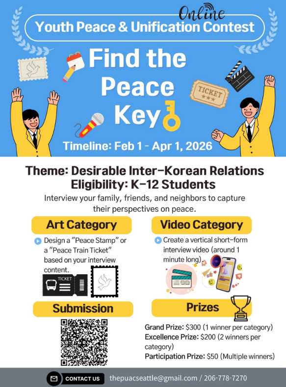 ¡ã¹®ÀÇ: Ȳ±ÔÈ£ ÇùÀÇȸÀå (206) 359-1051, kenhwang007@gmail.com / À±Çý¼º ÅëÀϱ³À°ºÐ°ú À§¿øÀå (206) 778-7270, thepuacseattle@gmail.com