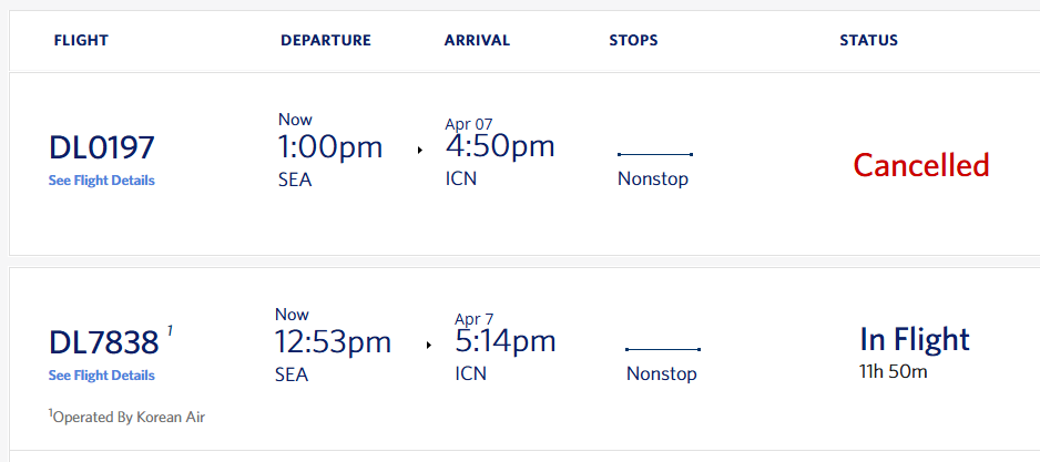 µ¨Å¸Ç×°ø ȨÆäÀÌÁö ¿îÇ×ÇöȲ(Flight Status)¿¡ µû¸£¸é ÇØ´ç Ç×°øÆíÀº ÃÖÁ¾ Ãë¼ÒµÈ °ÍÀ¸·Î Ç¥½ÃµÆ´Ù. Ç×°ø»ç ÃøÀº ½Â°´µé¿¡°Ô ¼÷½Ä µî ÇÊ¿äÇÑ Áö¿øÀ» Á¦°øÇϰí, 7ÀÏ ¿ÀÀü ÇÏ¿ÍÀÌ È£³î·ê·ç¸¦ °æÀ¯ÇØ ÀÎõÀ¸·Î À̵¿ÇÒ ¼ö ÀÖµµ·Ï ´ëü Ç×°øÆíÀ» ¸¶·ÃÇÑ °ÍÀ¸·Î ¾Ë·ÁÁ³´Ù.