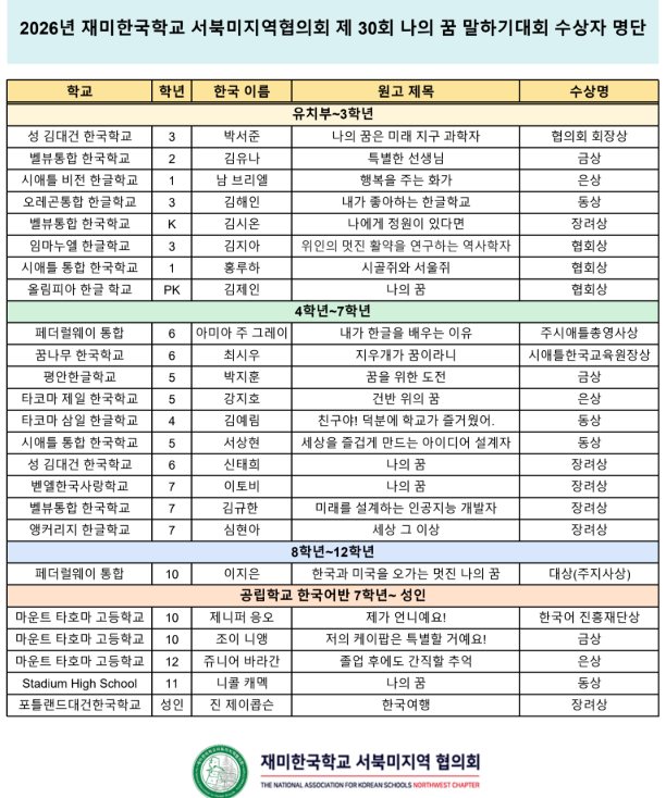 À±¼¼Áø ȸÀåÀº ¡°30ȸ¸¦ ¸ÂÀÌÇÑ À̹ø ´ëȸ´Â ´ÙÀ½ ¼¼´ë°¡ ÀÚ½ÅÀÇ ²ÞÀ» ¹ß°ßÇϰí Ç¥ÇöÇÏ´Â ¼ÒÁßÇÑ ±³À°ÀÇ À塱À̶ó¸ç ¡°¾ÕÀ¸·Îµµ ÇлýµéÀÌ Çѱ¹¾î¸¦ ÅëÇØ ÀÚ½ÅÀÇ »ý°¢°ú ²ÞÀ» ¸¶À½²¯ ÆîÄ¥ ¼ö ÀÖµµ·Ï Áö¼ÓÀûÀ¸·Î Áö¿øÇØ ³ª°¡°Ú´Ù¡±°í ¹àÇû´Ù.