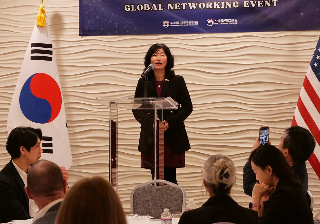 ¹Ú¹ÌÁ¶ ÃÑ¿µ»ç´Â Àλ縻¿¡¼ ¡°¸¹Àº ¹Ì±¹ ÇлýµéÀÌ K-ÆË°ú K-µå¶ó¸¶ µî Çѱ¹ ¹®È¸¦ ÅëÇØ Çѱ¹¿¡ °ü½ÉÀ» °®Áö¸¸, Çѱ¹ À¯ÇÐÀº ±× ÀÌ»óÀÇ °¡Ä¡¸¦ Áö´Ñ´Ù¡±¸ç ¡°¹ÝµµÃ¼, Á¶¼±, ¹èÅ͸®, ÀÚµ¿Â÷, ÀΰøÁö´É(AI) µî ±Û·Î¹ú »ê¾÷À» ¼±µµÇÏ´Â Çѱ¹¿¡¼ÀÇ °æÇèÀº Çлýµé¿¡°Ô ¼¼°è ½ÃÀå°ú ¿¬°áµÇ´Â Áß¿äÇÑ ±âȸ°¡ µÉ °Í¡±À̶ó°í °Á¶Çß´Ù.
