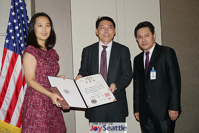 ÇÑÆí À̳¯ Çà»ç¿¡¼ À¯³ª¿µ °£»ç¿Í ¼Õ¼®±Ù ¾ÞÄ¿¸®Áö ÁöȸÀåÀÌ ÀÌ ÃÑ¿µ»ç¸¦ ÅëÇØ ´ëÅë·É ǥâÀ» Àü´Þ¹Þ¾Ò°í ³ë ȸÀåÀÌ ½Ã¾ÖƲÆòÅëÇùÀÇȸ¸¦ ´ëÇ¥ÇØ 2³â¸¸¿¡ ½Ã¾ÖƲÀ» ¶°³ª°ÔµÈ ¹Ú°æ½Ä ºÎÃÑ¿µ»ç¿¡°Ô °¨»çÆÐ¸¦ ÀüÇß´Ù.