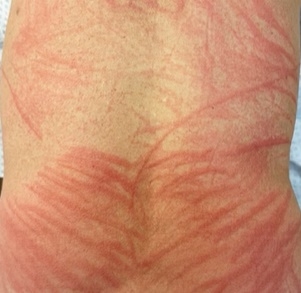 °¡Àå Æ¯Â¡ÀûÀÎ Áõ»óÀº ¸¶Ä¡ äÂïÀ¸·Î ¸ÂÀº µíÇÑ ÁÙ¹«´Ì ÇüÅÂÀÇ ¹ßÁøÀÌ´Ù. º¸Åë ¼·Ãë ÈÄ 2~3ÀÏÀÌ Áö³ª¸é ¸öÅë°ú ÆÈ´Ù¸®¸¦ Áß½ÉÀ¸·Î ½ÉÇÑ °¡·Á¿òÀ» µ¿¹ÝÇÑ ÇǺΠº´º¯ÀÌ »ý±ä´Ù.