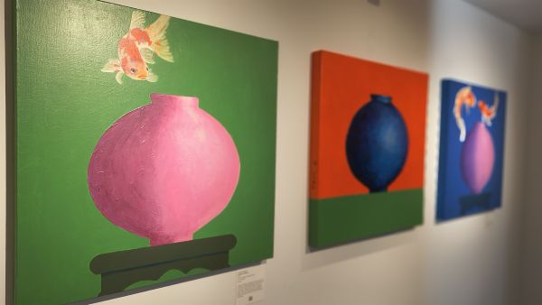Ç׾Ƹ®¸¦ µÑ·¯½Ñ È¸È ÀÛǰµéÀº µ¿ÀÏÇÑ ´ÞÇ׾Ƹ® ÇüÅ¿¡¼ ÇÑ °¡Áö »öÀ» ÃßÃâÇØ °Á¶ÇÏ´Â ¹æ½ÄÀ¸·Î ±¸¼ºµÆ´Ù. °ã°ãÀÇ º×ÁúÀ» ÅëÇØ ºÎµå·¯¿î »öÁ¶¸¦ °·ÄÇÑ »ö°¨À¸·Î È®Àå½Ã۸ç, Æò¸é ¹è°æ À§¿¡¼ ÀÔüÀûÀ¸·Î ¶°¿À¸£´Â Ç׾Ƹ® Çü»óÀ» ¼±º¸ÀδÙ.