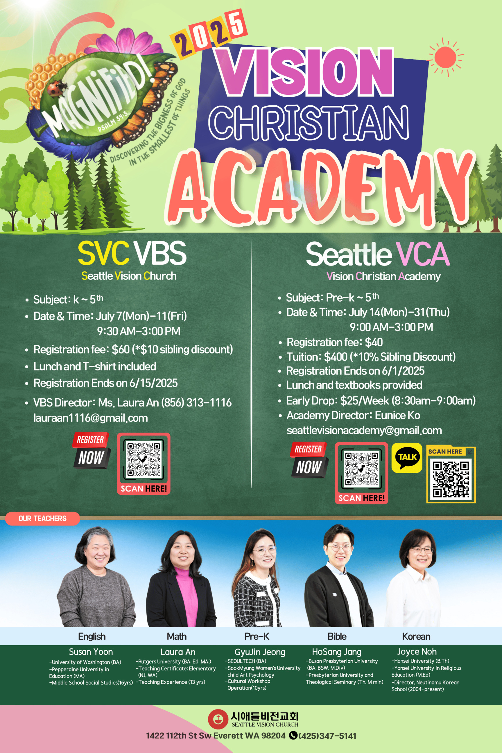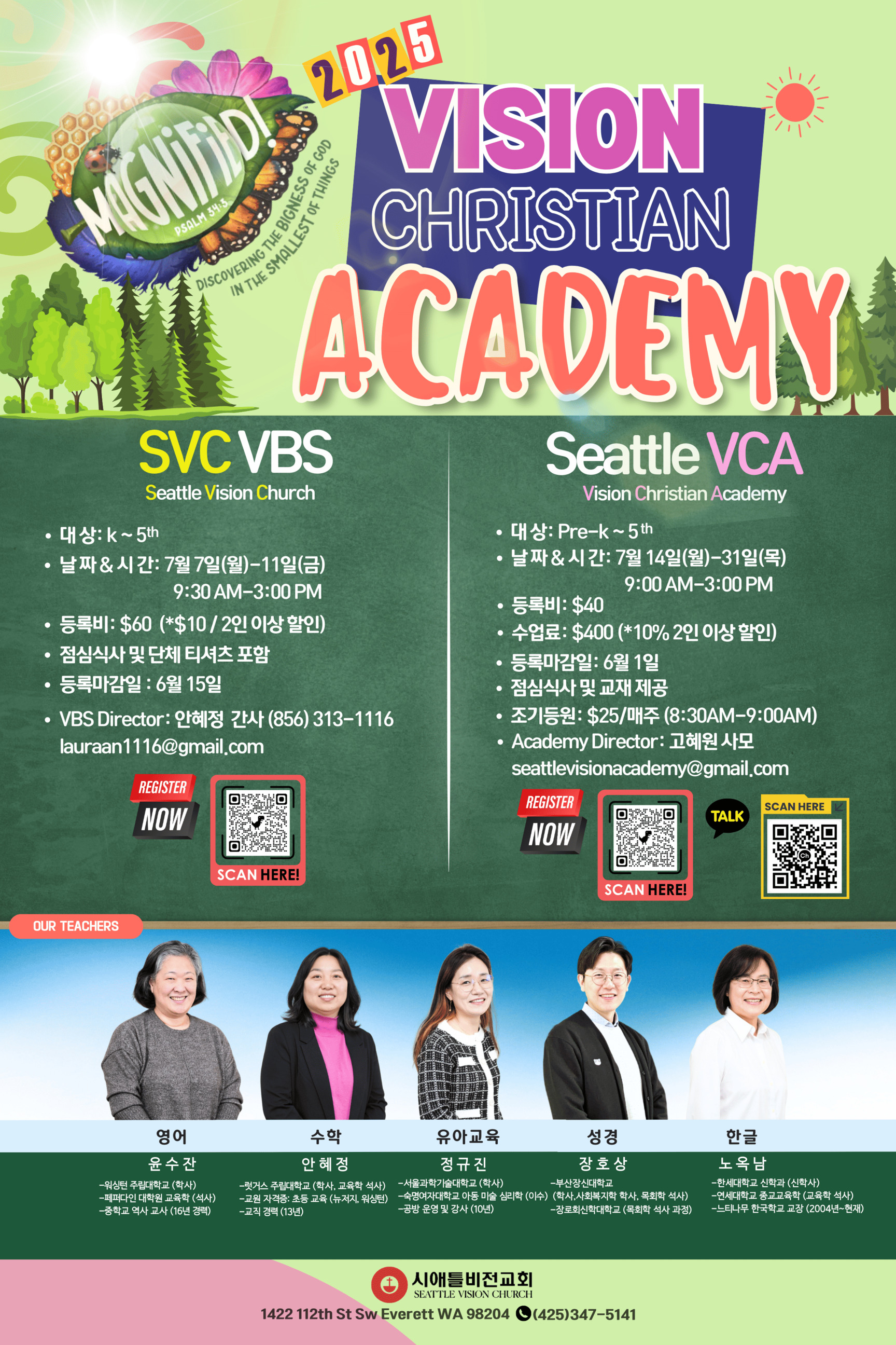 ½Ã¾ÖƲºñÀü±³È¸(Seattle Vision Church)¿¡¼ 7¿ù 7ÀÏ(¿ù)~11ÀÏ(±Ý) 9:30AM-3:00PM ±îÁö VBS¿Í 14ÀÏ(¿ù)~31ÀÏ(¸ñ) 9:00AM-3:00PM±îÁöVISION CHRISTIAN ACADEMY°¡ ÇÔ²² ¿¸³´Ï´Ù.